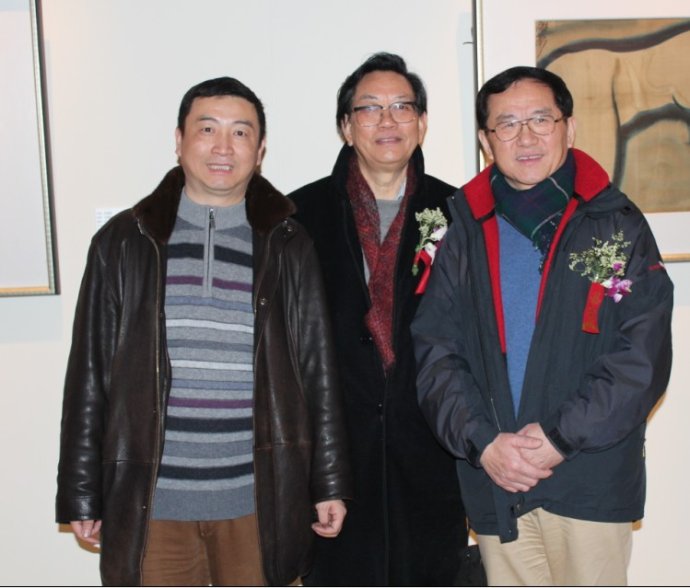 图片从左至右依次为市委宣传部副部长朱英磊,策展人施平、画家汪志杰