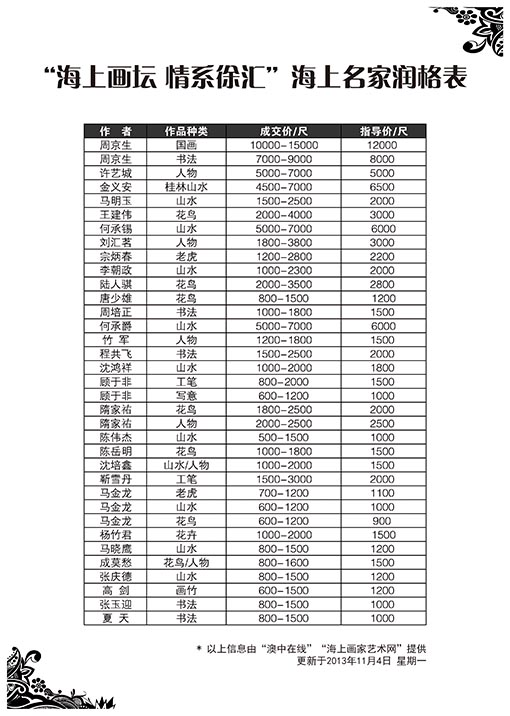 第八届“海上画坛·情系徐汇”画展暨笔会时间、画家、润格公示