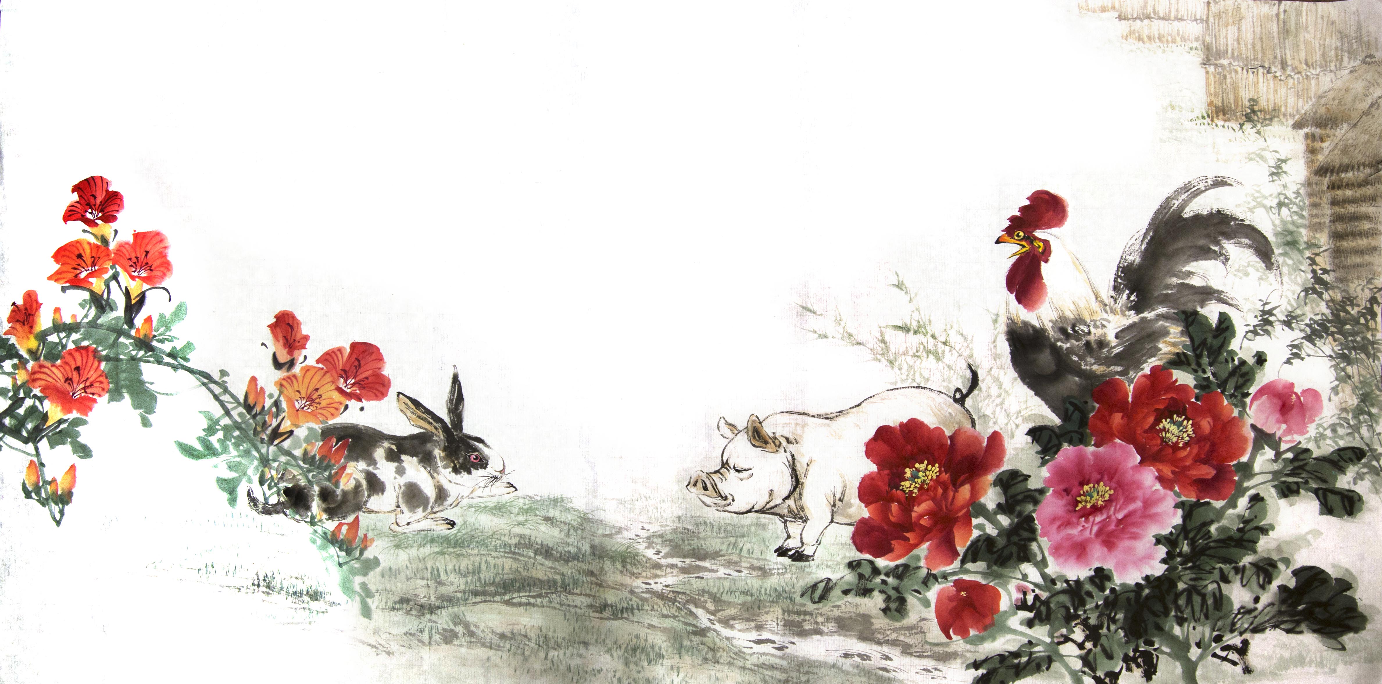 王建伟生肖画《富贵满园》