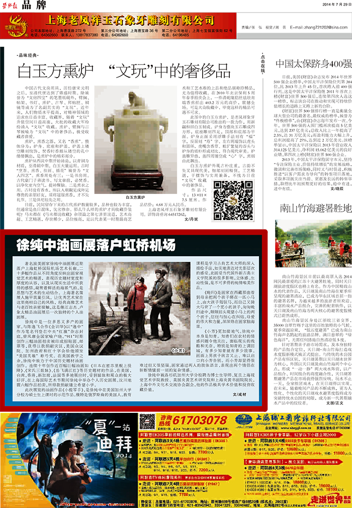 《劳动报》:徐纯中油画展落户虹桥机场