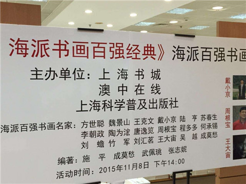 由沪上著名策展人施平主编的《书画投资与鉴赏·海派书画百强经典》一书今年8月曾参加“上海书展”,百余名读者购得该书同时喜获名家墨宝。11月8日,在“上海书城”18周年庆之际,策展人施平再次邀请方世聪、魏景山、王克文、戴小京、陆亨、苏春生、李朝政、陶为縥、唐逸览、周根宝、程多多、何承锡、刘蟾、竹军、刘汇茗、王大宙、吴越、成莫愁等18位百强书画名家,走进书城再次签售《百强经典》。
