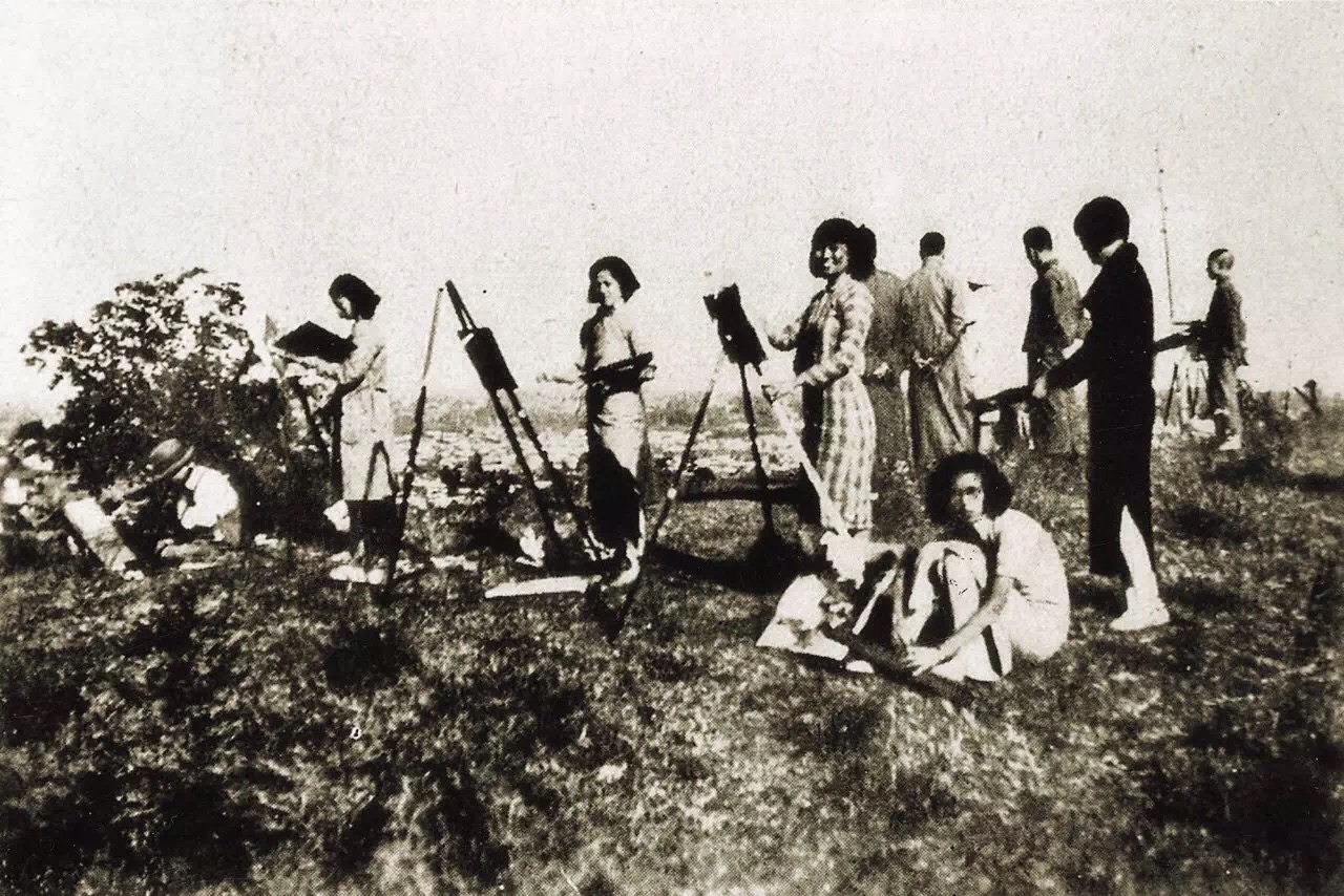 上海美专的学生在杭州旅行写生