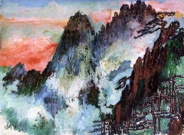 刘海粟作品 《莲花峰蕊峰晚霞》