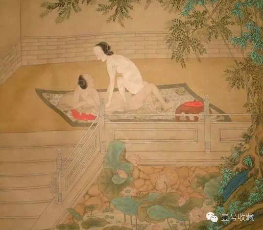 和唐寅可相媲美的还有明朝四大画家之一的仇英。仇英是工匠出身,后来也从周臣学画,为文徵明所称誉,从而知名于世。他主要以卖画为生,画春宫画也十分有名。他画全身着衣的恋人,也画裸体相交的男女。仇英还在一轴明春宫卷的卷首中指明画了一套“十荣”,即十种不同的性交姿势,但这些画并没有流传下来。