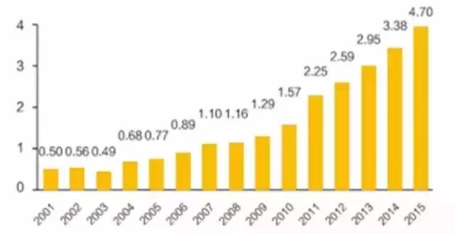 国家旅游局数据显示,2008年,国内旅游人数20亿人次,2015年达40亿人次,7 年翻一番。2015年共有41.2亿人次国内或出境游,相当于全国人口一年旅游近3次。