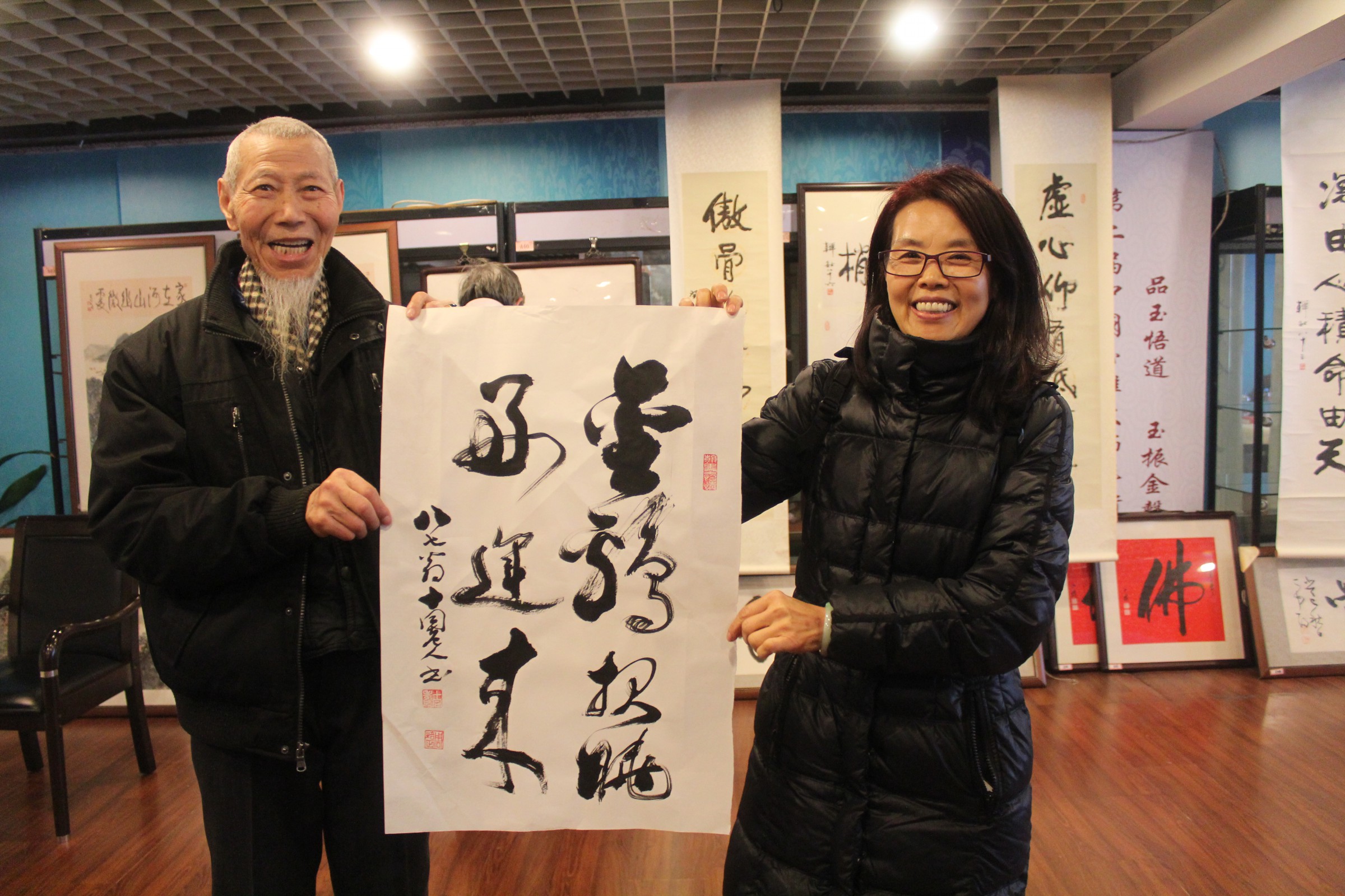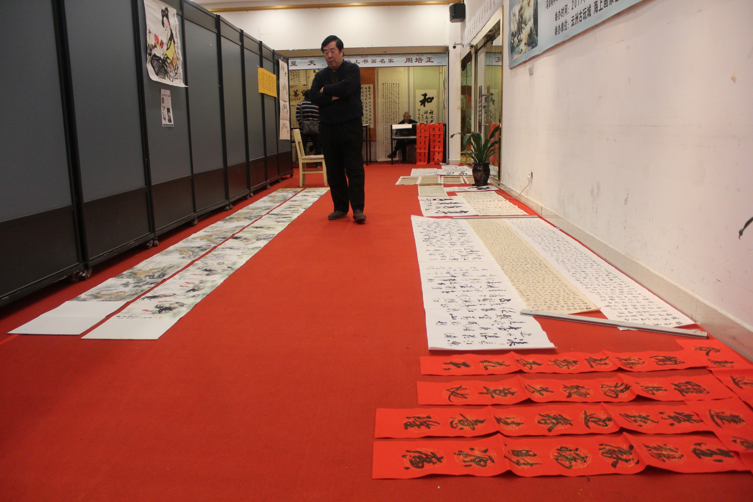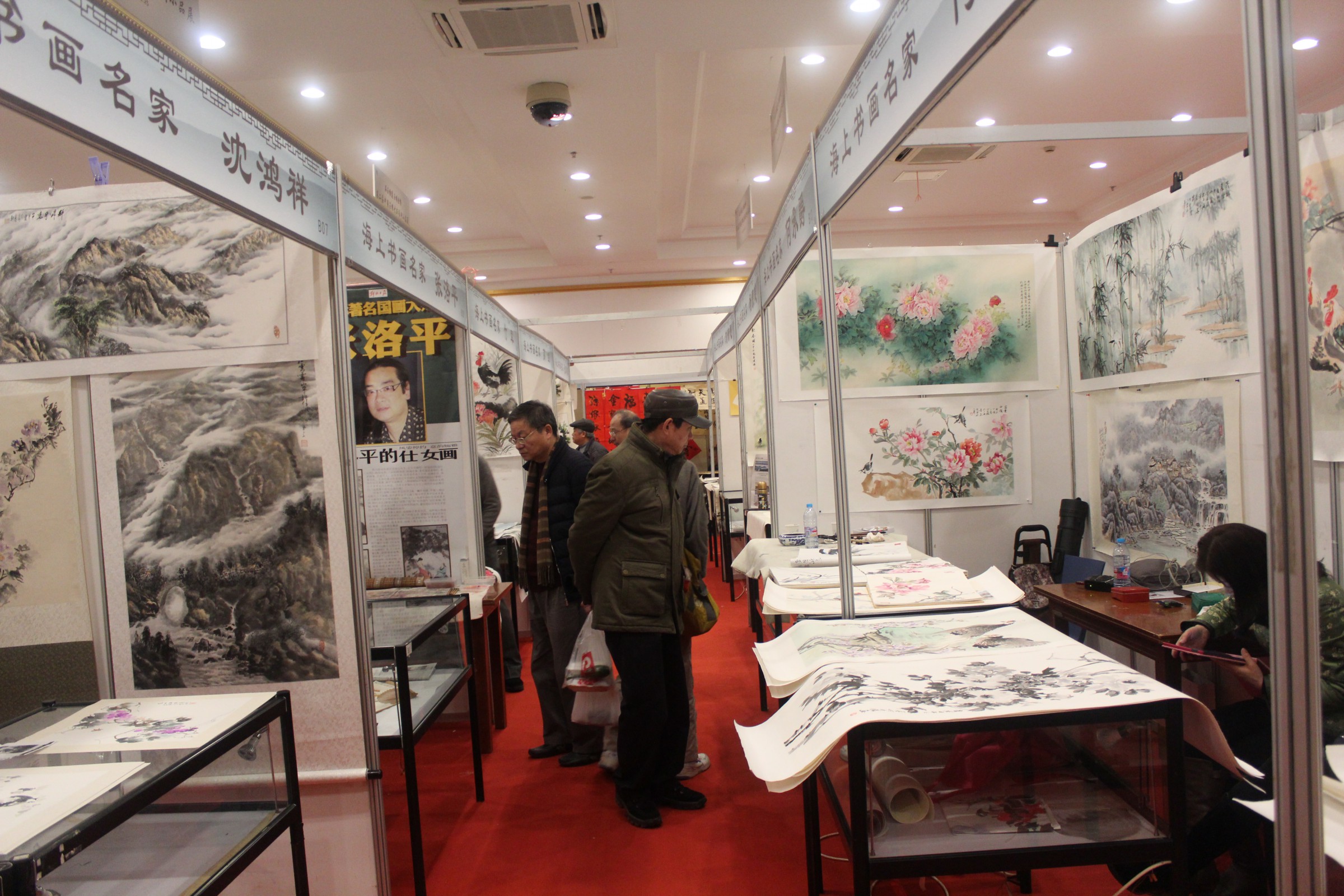 本次笔会韩敏、林曦明、王克文、韩伍、韩硕、苏春生、丁申阳、戴小京、车鹏飞、梁洪涛、吴越、刘小晴、陆亨、程多多、周根宝、靳雪丹、金义安、朱忠明、何承锡、何承爵、张玉迎、李朝政、马明玉、刘汇茗、张庆德、夏天、宗炳春、马金龙、张洛平、竹军、沈鸿祥、苏正荣、陈岳明、张不求、刘新愚、成莫愁、高剑、郑明正、杨康健、吕云炜40位书画名家、书画精品齐聚云洲古玩城。书画家现场时而泼墨挥毫,时而笔走龙蛇,妙绘丹青,一幅幅作品都别具灵气,生气盎然。那色泽饱满的山水,精雕细琢的繁花,个性张扬的狂草、端庄精致的楷书无一不展现出笔者的技法与风采,引无数观众前来观赏、询问,有不少观众现场洽购,将心仪之作购置回家进行收藏,更有甚者,购置多幅作品当做新年礼物,将海派文化的祝福带给更多的人。这一举动也证实了书画收藏成为当前市场投资的一大潮流,越来越多的人愿意并希望加入到书画投资行列中来,每一个人都是海派文化的传播者、传承人。