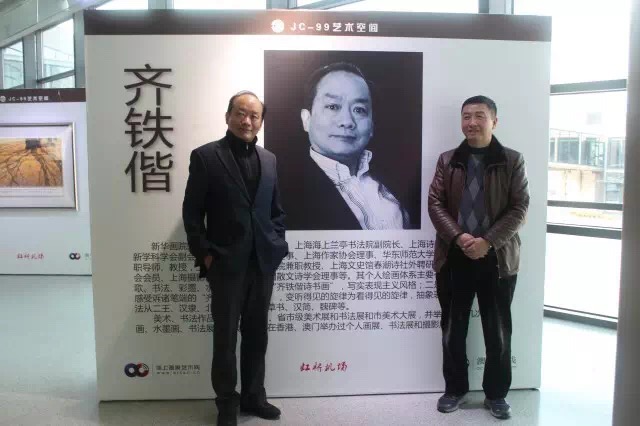 著名策展人施平、海派百强名家齐铁偕作品前合影