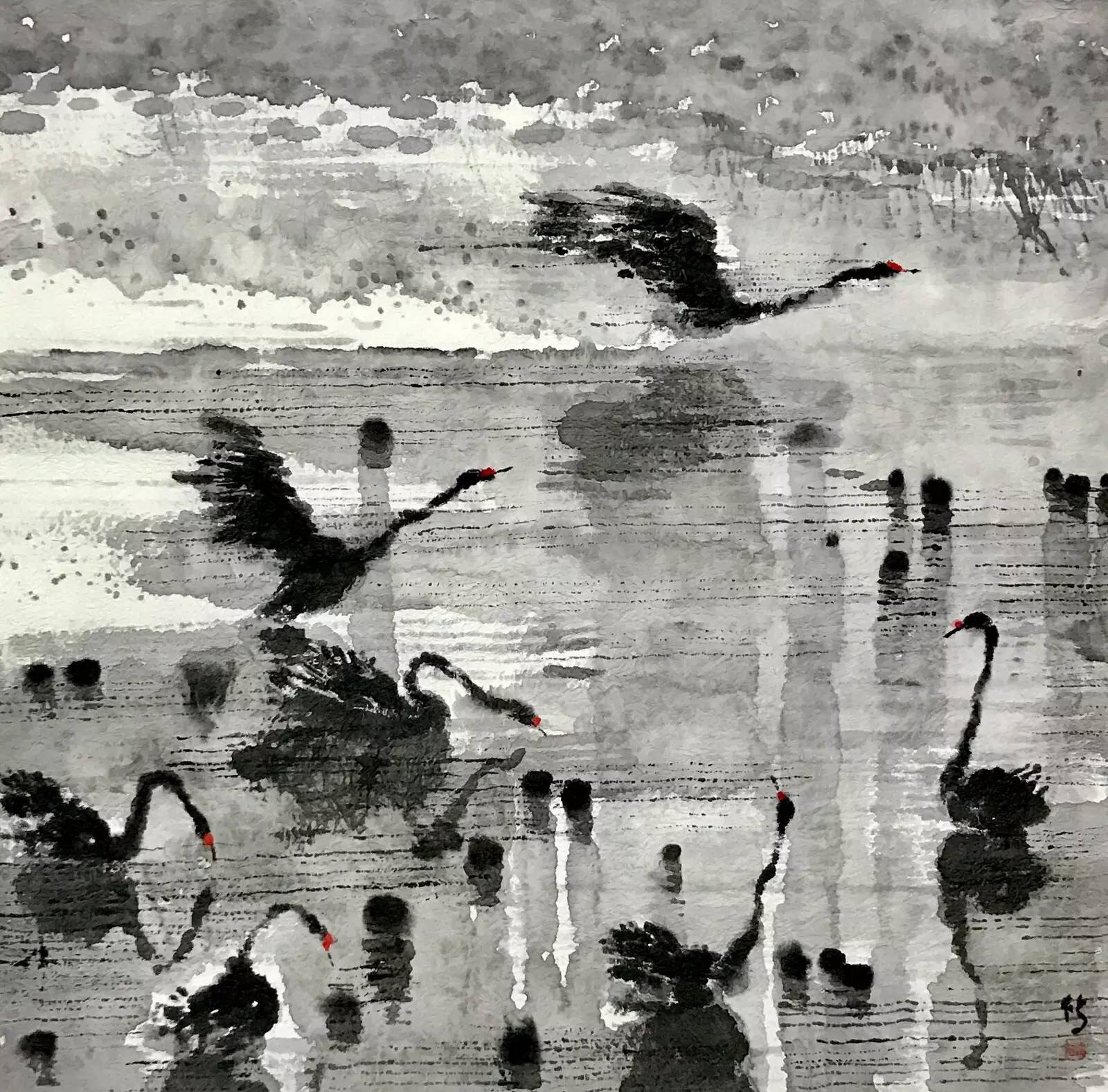 齐铁偕“诗书画”现代水墨展首次亮相虹桥机场