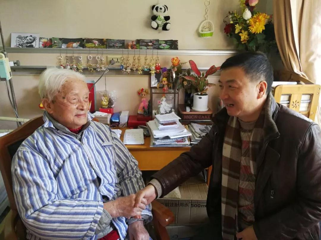 上海华东医院,一百零六岁的老施平一直惦记着小施平的到来。见到小施平,老施平高兴地坐了起来。