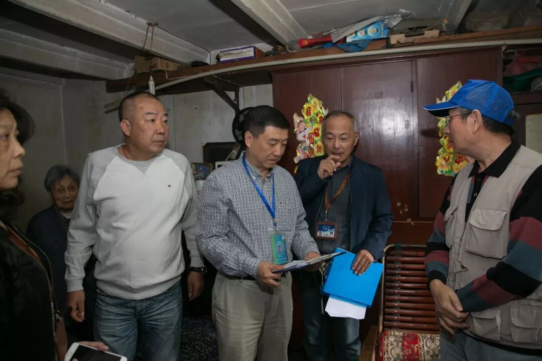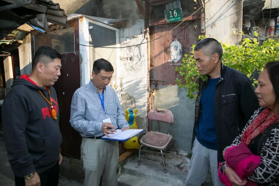早在过年前,上海房地产估价师事务所有限公司进驻这里。作为估价师、共产党员施平在现场评估勘查中,看到了这里几十年来的老化建筑,到处可见的木条板拼凑的违章搭建。屋外人行走道长竹杆、短竹杆、破竹杆交叉绑着发黑的防水布,可遮阳避雨。洗衣水斗都放在门外。高低不平的走道上污水横流,堆放着各种室内放不下的杂物。灶披间墙上密密麻麻挂着多只水表、电表,管线早已老化。电灯泡上套着脏兮兮的塑料袋,房间里逼仄的空间转个身也要考虑会不会撞倒其它物品。室内采光条件不足,卫生设施很差,不少居民"拎马桶"过日子。看着眼前的场景,他萌生了为居民献爱心的念头。