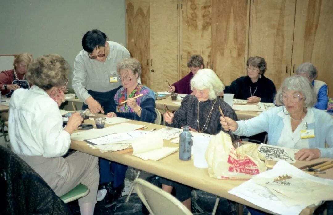 ▲程多多在旧金山教美国人画中国画