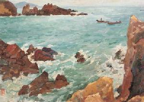 费以复为颜文粱的高足,1939年在重庆参加中华全国美术会,由徐悲鸿提名担任理事,1950年作品获华京美展三等奖,1953年由颜文粱推荐到中央美院华东分院(现浙江中国美院)任教,1954年参加第二届全国美展,1955年与黎冰鸿等人筹建油画系,文革期间被批成“国民党宫廷御用画家”,1980年恢复浙江美院华东分院油画系副主任职务,1982年病逝于兰州。1995年费以复的作品开始在国际市场上亮相。这次上海崇源共推出费以复4幅作品,其总一幅《嵊泗海景》(尺寸66×51CM)成交价为1.43万元,其余三幅———《崂山潮音瀑》(估价6000-8000元)、《大同云冈石窟》(估价6000-8000元)、《山路》(估价12000-15000元)均出现了流标。从中可以看出,费以复的作品估价尽管很低,但市场成交却很不理想,相反,不少第三和第四代油画家的作品动辄都是数十万元,令第二代乃至第一代油画家望尘莫及。