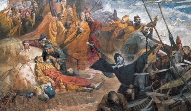 在他的家中,首先映入眼帘的是一幅大气磅礴的油画巨作《鉴真东渡》。神态生动的人物形象、稳重严谨的色彩感,无疑是更为炉火纯青了。画室中,其它的油画作品或悬挂着,或叠放着,还有正为“全国著名画家画杭州——杭州地区风情画展”而创作的一幅关于万松书院的油画,这是一次由市美协组织,着重推出西湖新十景的展览,也是何老师最近在忙着的事情之一。