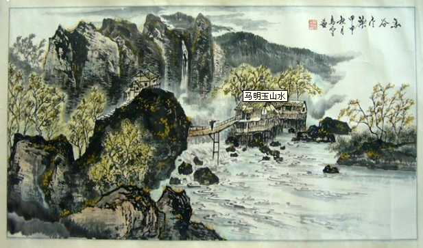 古人云:法古法,易于取其迹,难以取其理;师造化,易于取其形,难于取其生,;得心源,易于取其显,难以取其幽。佘玉奇法古法,得其取舍自如;师造化,感其奇绝,吸其生趣;得心源,以善为根,以朴为美。之所以能取得如此丰硕的成果,与马明玉在艺术创作上的不断探索和对艺术的超越意识不无关联。凭借敏锐的艺术触觉,马明玉深刻领悟到:只有不断地创新,才能使艺术富有生命力。 马明玉潜心研习唐寅山水画多年并用自己浅显易懂的语言将唐寅的山水画法理论化、写意化。但是他的画,笔下有质,墨中有韵,他不是“残山剩水”的旧式照搬硬套,而是随时代变化充满了当代气息,他在造型取势上更多地是从当代现实中撷取形象,并进行增删、取舍和提炼,体现出章法结构上的独特,饱满而不失空灵,拙厚而蕴含秀巧。画面生动活泼,富有生机和活力,全新的精神气息扑面而至,具有很强的视觉张力和震撼力,令人耳目一新。他的《孤帆远影碧空尽》、《野渡无人舟自横》没有剑走偏锋的前卫,也没有故弄玄虚的抽象,而是伸手可及的朴实亲切,清新爽朗的鲜活淋漓。