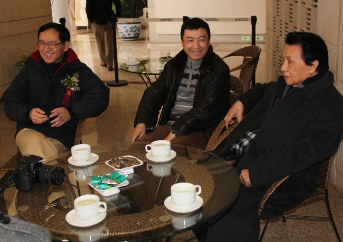 图片从左至右依次为市委宣传部副部长朱英磊,策展人施平、画家汪志杰