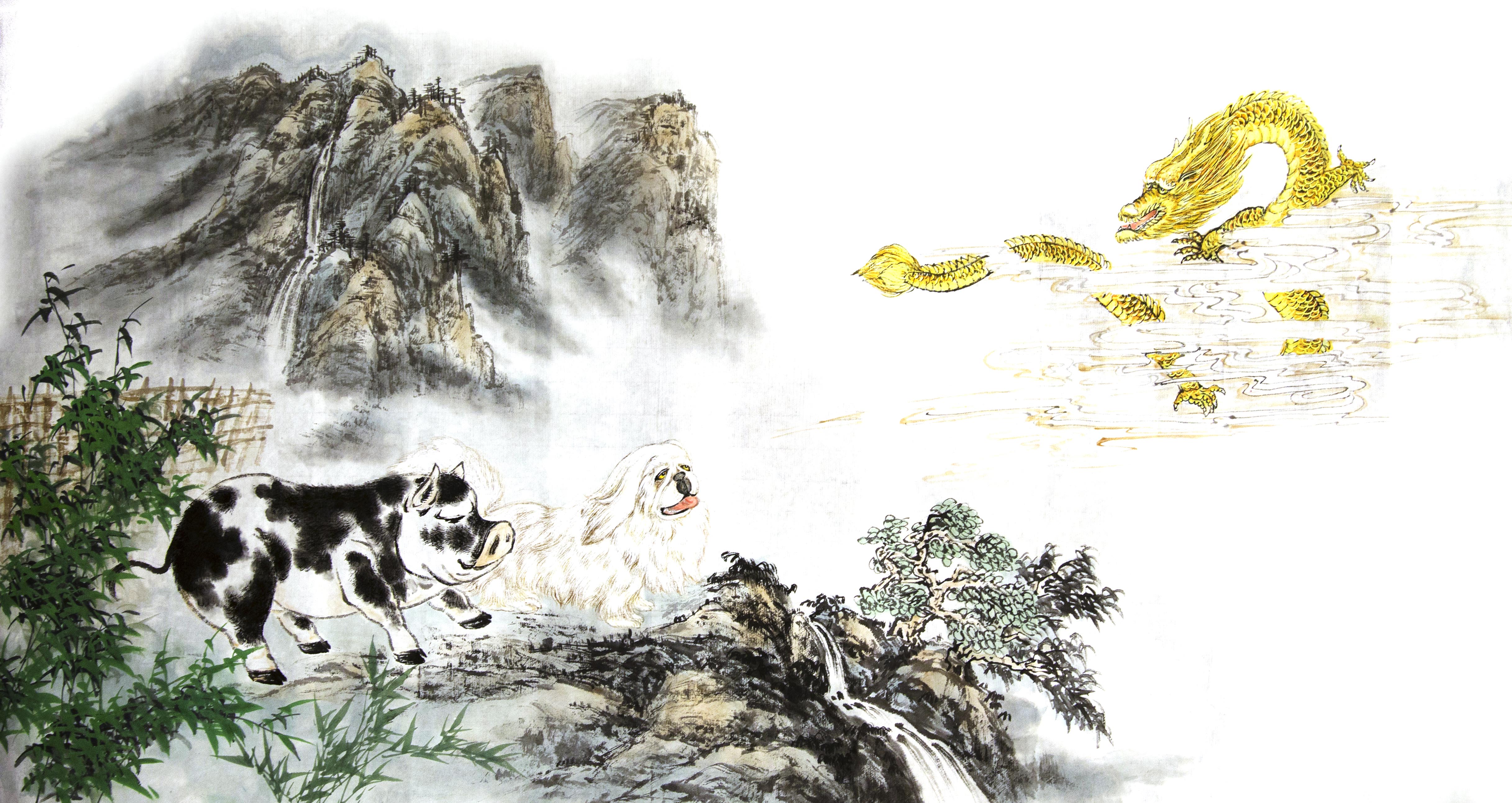 整个画面烟波浩渺,云雾迷蒙,有多少说不尽的意味在其中。在我们平凡的人生中,总有一段不得不去的远行,让我们远离家乡、亲人,或去求学、或去工作、或去追寻,因此也一定会遇到许多的未知、挫折和迷茫,有如陷身于迷雾的丛林,但亲情的目光却始终照亮和围绕在我们的身旁,给与我们的信心和希望,而海上著名画家王建伟的生肖画《飞龙乘云》,其要表达的正是这样的一种亲情的温暖和力量。(诗/武佩珧 文/张志妮)