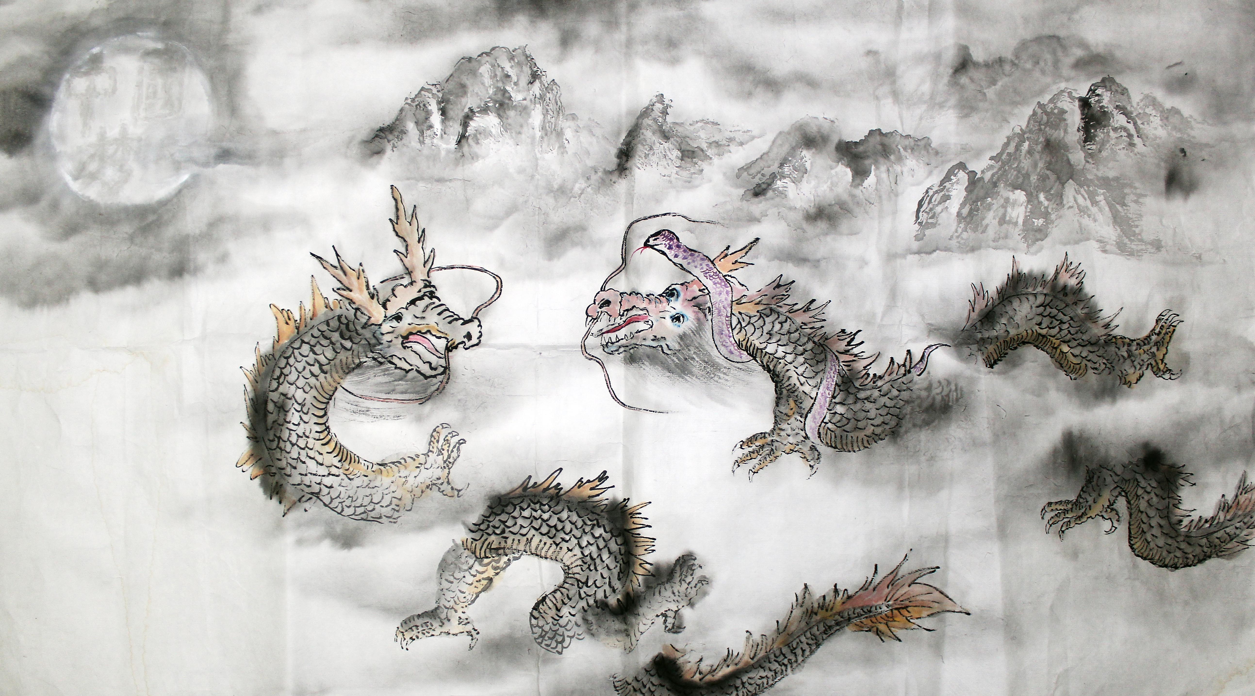 “恭行苍山伟为忠,天下归往万山中;晶轮一片望宇昊,三龙奔月中国梦。”这是一首题于海上画家陈岳明先生画的一幅家庭生肖画上的诗。此幅画的主人叫龚伟忠,夫人叫王晶,孩子属蛇,叫宇昊。柳宗元在他的一片《武冈铭》中说:奉职输赋,进比蕈人,无敢不龚。其中的“龚”就是恭敬,因此,在古文有述:“龚”、“恭”同义。而夫人姓王,王者,在古文中又曰:天下归往者谓之王。由此你就不难看出题诗者的用心和寓意了。诗中的“恭行苍山伟为忠”,意谓着一条苍龙飞翔在万山之中,其目视苍山的诚意和恭敬,仿佛是来自于“伟”之自身的一种图腾和忠实于梦想的一种真实。“天下归往万山中”,王者为母,母者为天下最大,其守候的不仅仅就是龙与山的苍茫,云和天的相约,俯在其背、深藏于心的还有对于那一条小龙、自己孩子的无边希望和期待,而天边的那轮明月破云而出,随月而生的,仿佛就是他们共同的梦想和希望。“三龙奔月中国梦”,由此而提升的整个画面的家庭主题和社会责任与人心共融的美好希望,这不也正是我们的每个家庭的梦想和整个社会的人心所向吗?(诗 武佩珧)