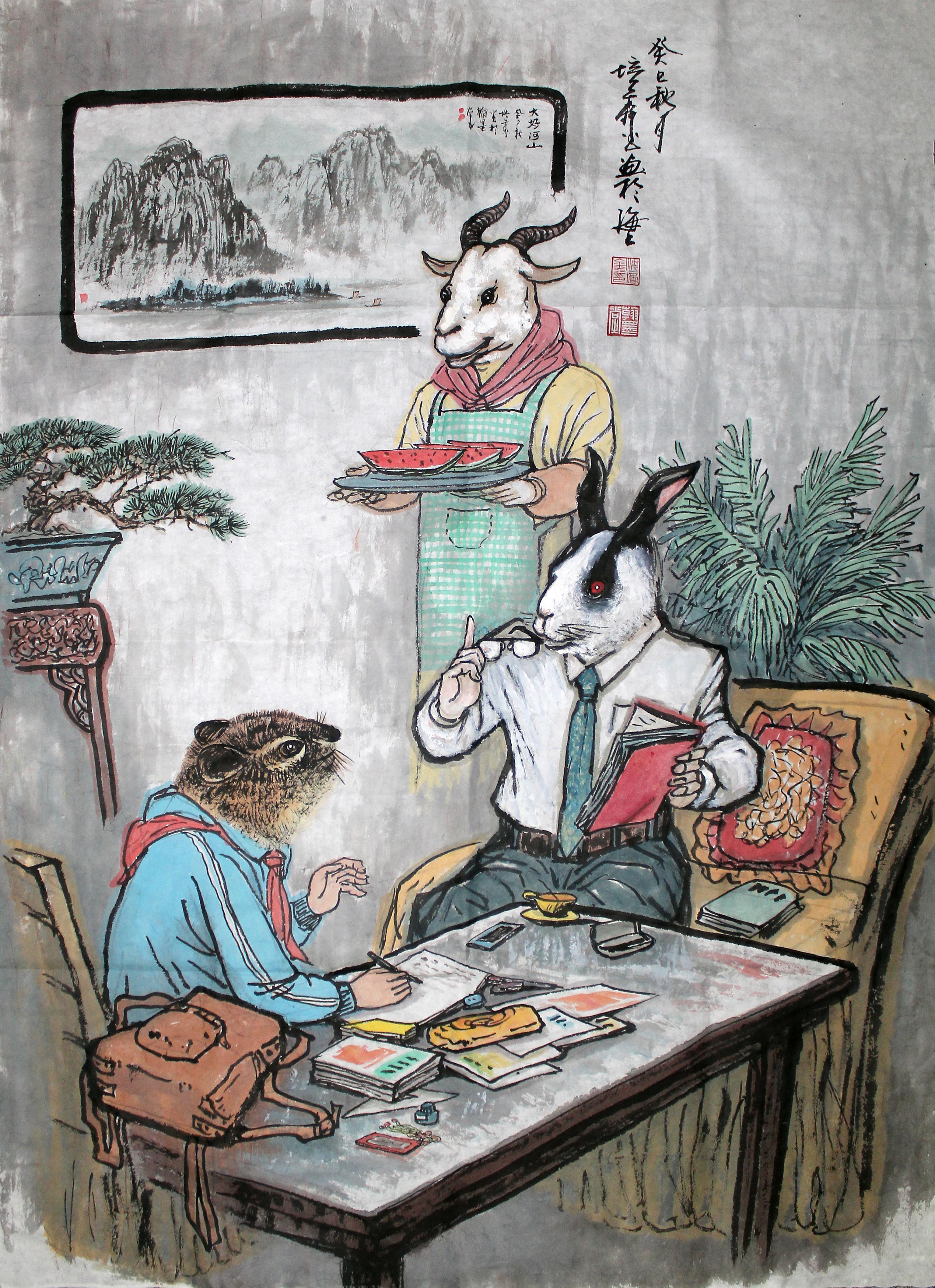 沈培鑫生肖画《围桌夜话》