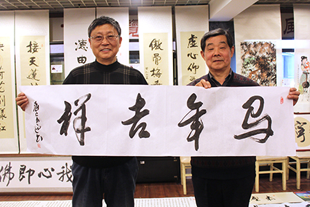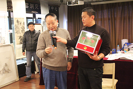 笔会得到了五涟矿泉水的全程赞助,日均两次的抽奖活动也得到了刘汇茗、杨康健、宗炳春、张玉迎、周培正和夏天六位书画家的大力支持。笔会现场人声鼎沸,报幕声、拍照声、抽奖声、买卖声,十分热闹,不少外地游客和外国留学生也前来参展观摩学习。周培正书法奖品得主更是现场挥毫,回赠字画,引来欢呼声、掌声不断。赢取王建伟终极大奖《紫气东来》的活动,将笔会推向高潮。大奖得主傅海龙对大奖作品十分满意,并与王建伟一起向所有书画家和观画者们表达了马年新春的祝福。最后,第九届云州笔会圆满落幕。