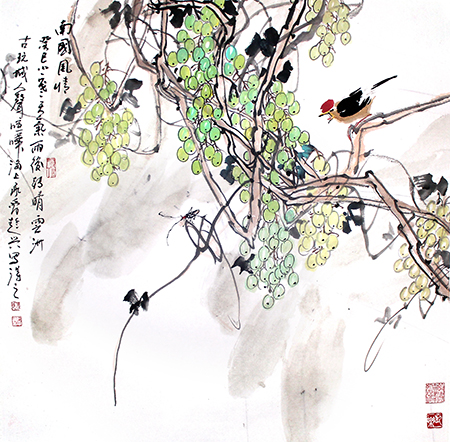 画面所展现的是云贵高原常见的绿藤野果,画家有感而发,因情生意,二十五载的教学青春如那藤中青翠,旖旎从风,仿佛历历在目。想必那“南国风光无限美”的不仅是那野果俏山,更是一个老知青关于时光的记忆与深情。