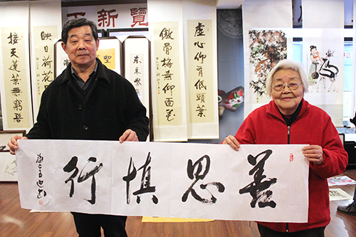 “毛体”大师张玉迎为最高龄获奖者86岁赵女士颁奖