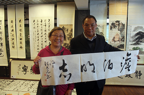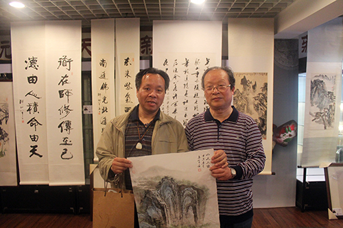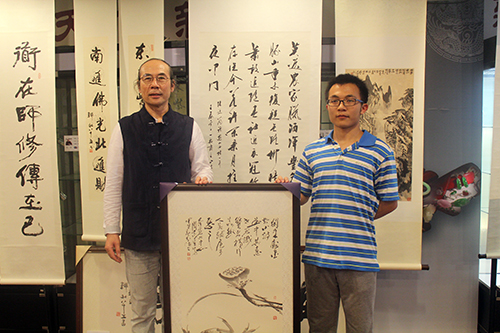 仿古山水画家朱忠明和因宗教题材创作备受关注的画家刘新愚加盟笔会,令人耳目一新。书画家靳雪丹、竹军、马明玉、夏天、张玉迎、程共飞纷纷献上墨宝为笔会抽奖助兴。著名画家吴野洲、陈家冷的荷花作品首次亮相,让观画者大饱眼福、赞叹不已。触手可及的名家身影、应接不暇的丹青美景不仅吸引了90后投资者,曾上过《中国达人秀》的新锐书法韩伟也技痒难耐,为嘉宾们现场表演双钩字。周京生精品力作《荷蟹图》作为压轴大奖,刚一展出就备受瞩目,最后被94年的钱伟抽中。钱伟说,他要把这份意外惊喜送给妈妈,并祝她母亲节快乐。