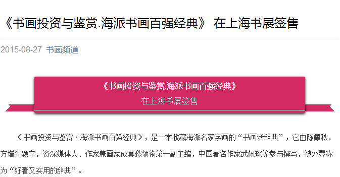 《书画投资与鉴赏·海派书画百强经典》签售活动书画频道“美术新闻”报道
