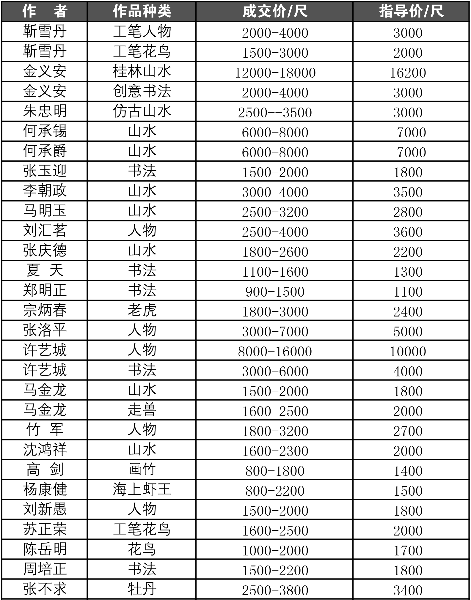 第二十届“海上画坛·情系徐汇”海上名家润格表
