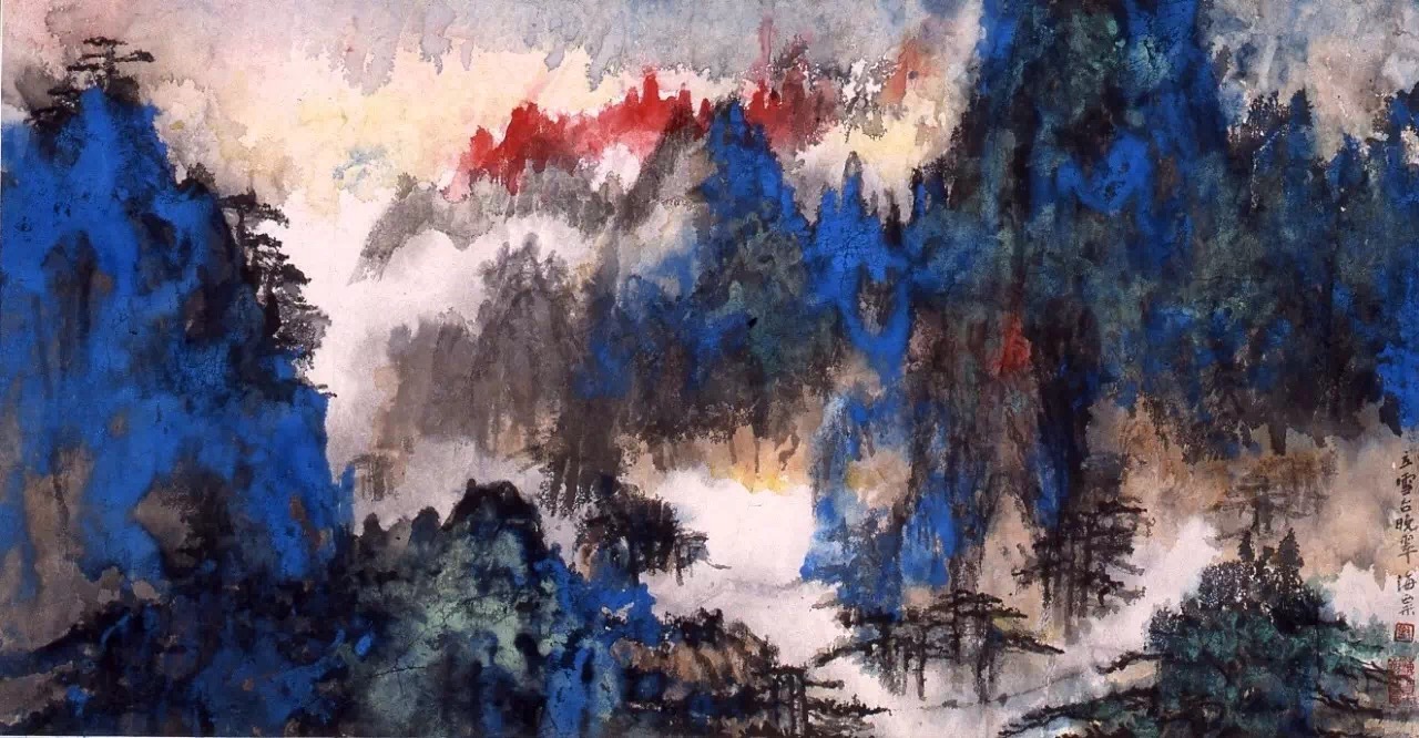 刘海粟作品 《莲花峰蕊峰晚霞》