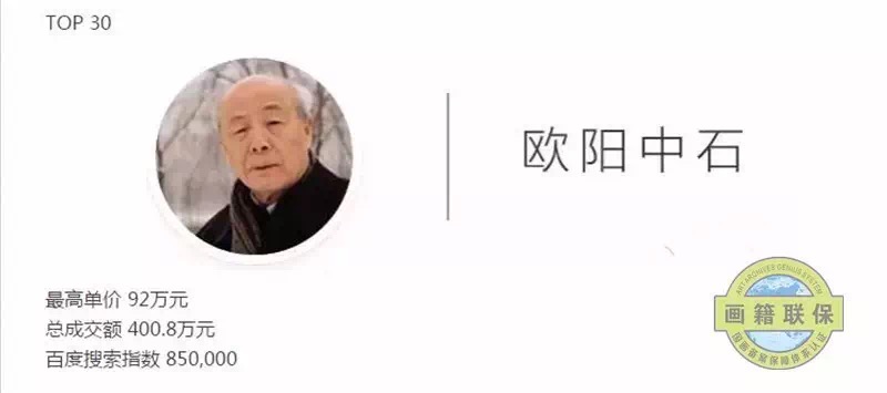 数据来源于样本拍卖公司网站及雅昌艺术网,本榜单成交数据样本公司为:佳士得(香港、纽约、上海)、苏富比(纽约、香港、北京)、保利拍卖(北京、香港、澳门、厦门、济南)、中国嘉德(北京、香港)、匡时、北京荣宝、北京宝瑞盈、北京翰海、华辰(北京、厦门)、上海明轩、朵云轩、上海天衡、上海嘉禾、上海泓盛、上海驰翰、荣宝斋(上海)、浙江南北、西泠、荣宝斋(济南)、广东崇正、华艺国际、罗芙奥。