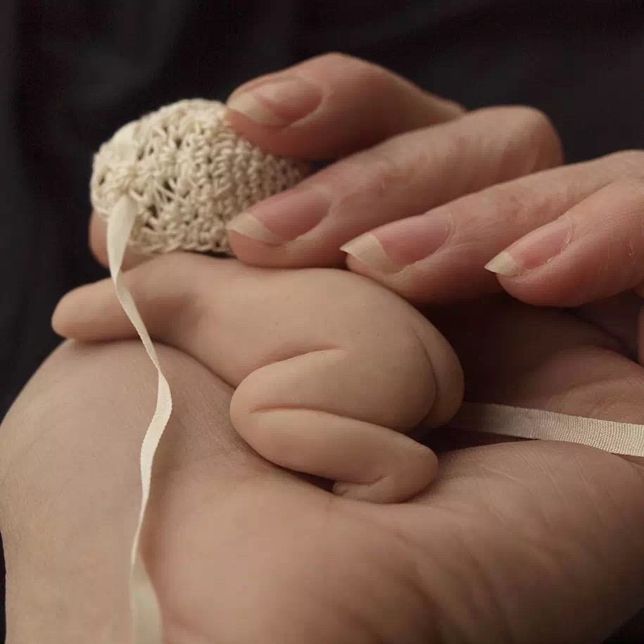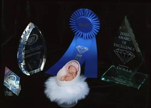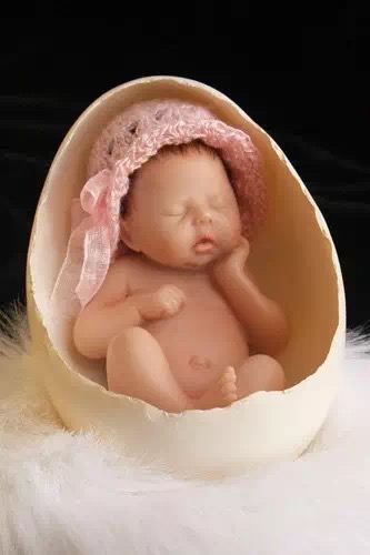 她的微型婴儿最小的才2.5英寸(6.5厘米),最大的也不过4英寸(约10.2厘米),但四肢五官俱全,且神态逼真。制作微型婴儿的材料是一种树脂粘土。她喜欢把这些婴儿放在蛋壳里,象征婴儿在母亲子宫内的孕育过程,故取名"egg baby"。她也会把它们放在贝壳里,叫做"shell baby",除了以贝壳坚硬的材料来突出婴儿的柔软的目的外,大概也是为了强调每个孩子都是母亲眼里的珍宝吧,或套用一句中国的成语,掌上明珠。