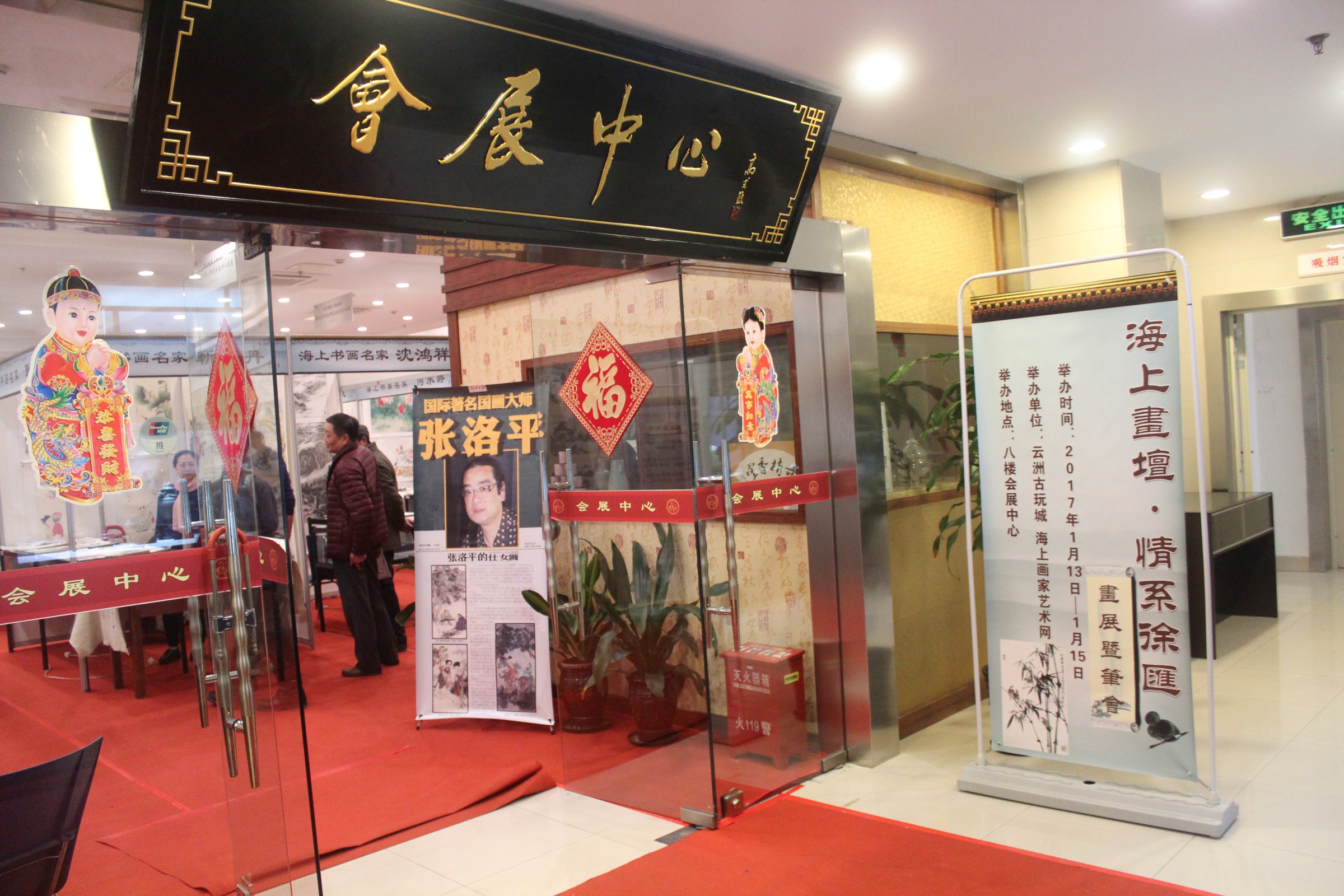 2017新年伊始,沪上40位著名书画家应上海著名策展人施平之邀齐聚云州古玩城(大木桥路88号)八楼会展中心,喜弄丹青,共谱诗意。第二十一届“海上画坛•情系徐汇”画展暨笔会就此拉开序幕,在这深秋之际,书画家现场挥墨泼毫,挥斥方遒,引无数观众慕名而来,共迎新春,其乐融融。