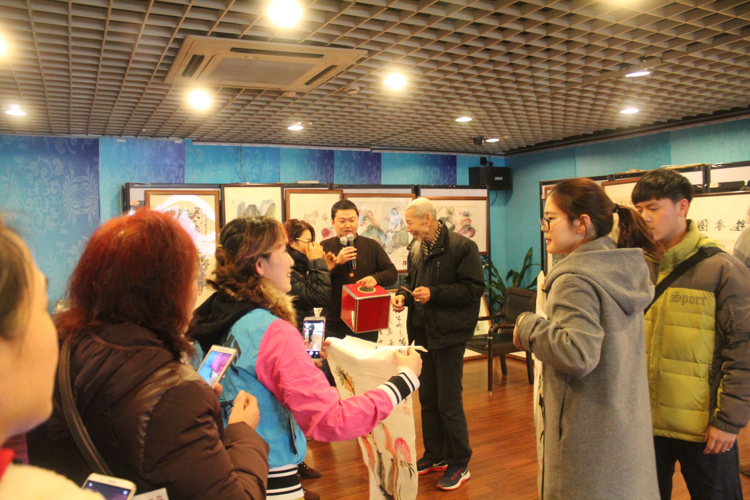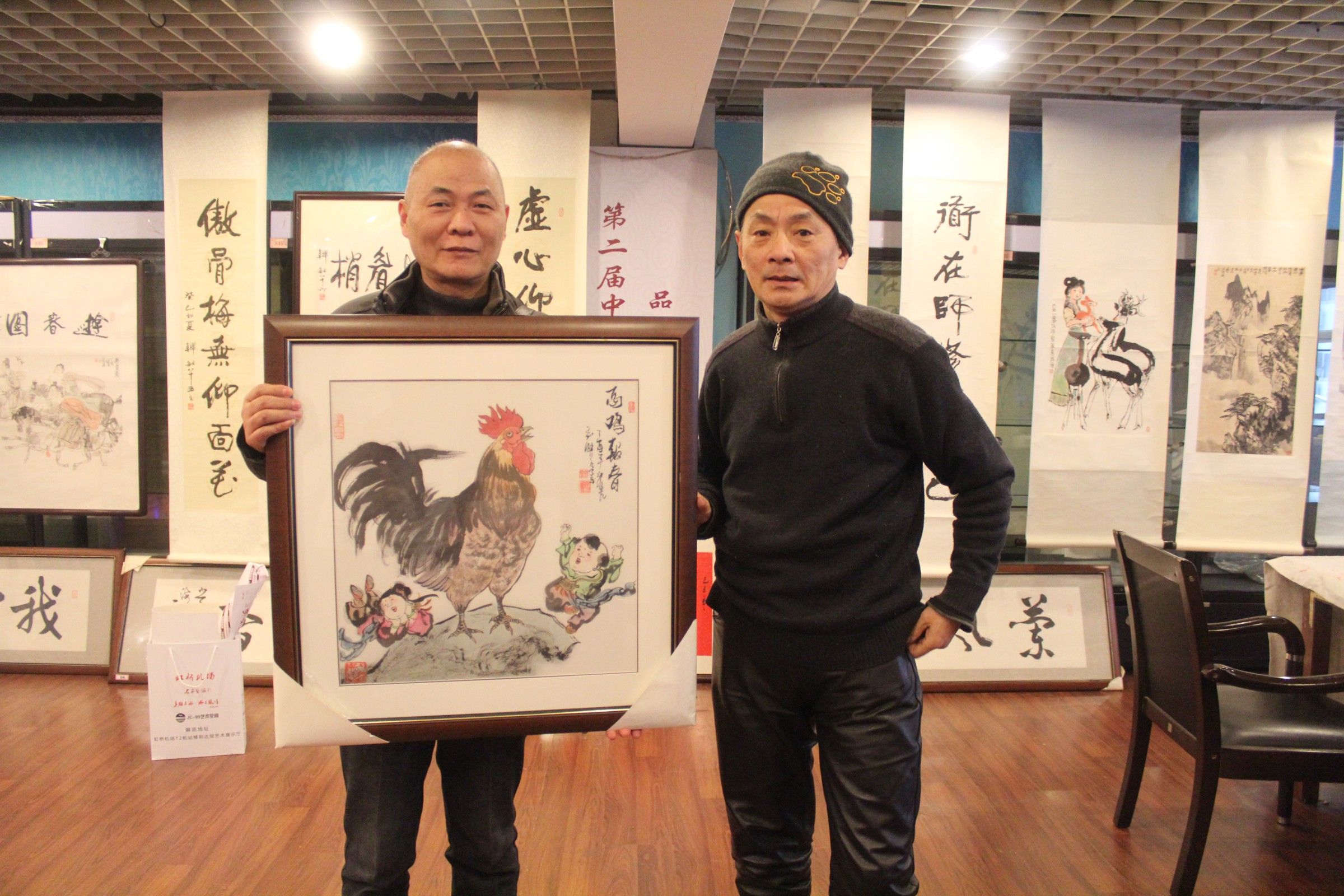 为期三天(1月13日-15日)的笔会,不仅免费对广大市民开放,而且每天都有两幅书画精品免费带回家。每天下午3:30准时抽奖活动总是能将活动推向高潮,多功能展厅人山人海,等待幸运之神的眷顾,将名家字画带回家,并与名家亲密互动、合影。并且在周日下午4:00更有终极大奖《酉鸡报春》,此幅作品是由海派百强名家刘汇茗所绘,是对即将来临的鸡年的美好祝愿,诚邀观众共迎新春。而策展人施平延续此免费抽奖环节,只为让更多的有缘人相识书画,更多的书画进入到不同人的家庭中去,坚持“艺术品进家庭”的策展理念,弘扬海派文化,传播名家风采。