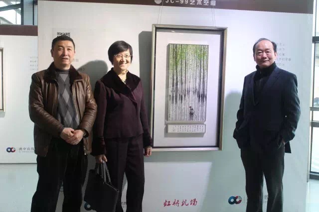 海派百强名家齐铁偕、著名策展人施平、齐铁偕夫人百强展板前合影
