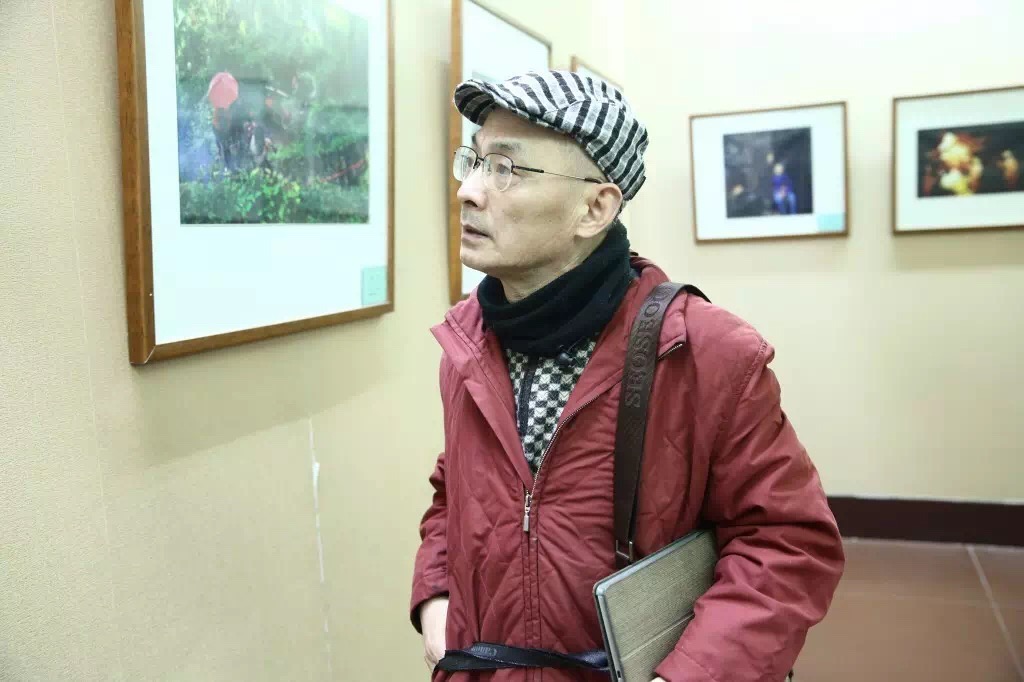 著名影视演员牛犇、海派百强名家万福堂、上海著名策展人施平合影