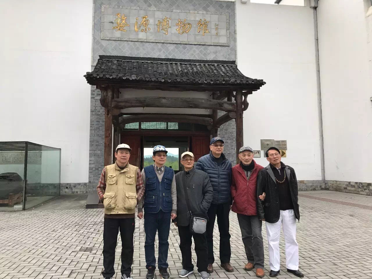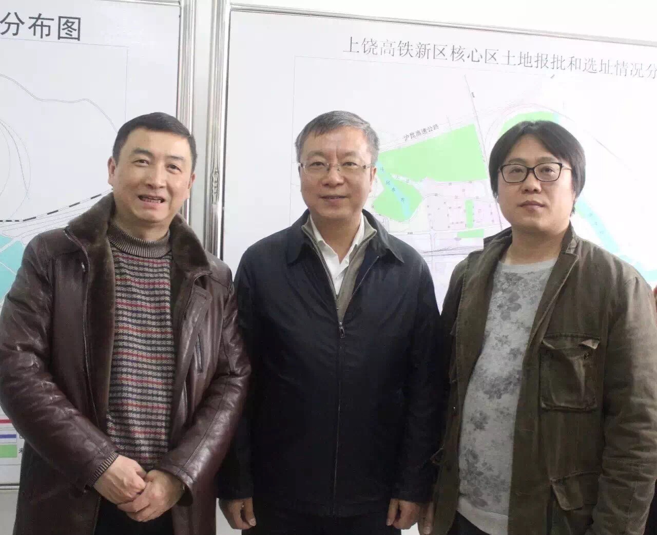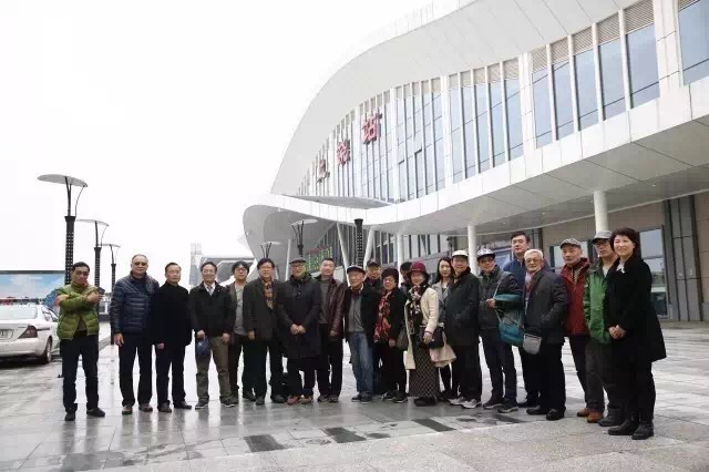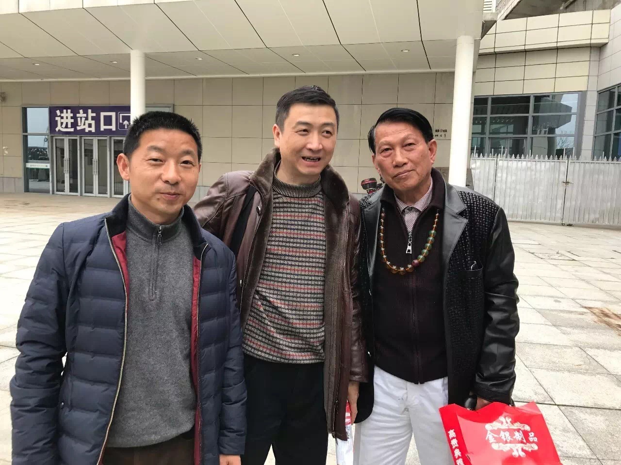上饶博物馆馆长江进民、上海著名策展人施平、著名收藏家杨百兴车站前合影