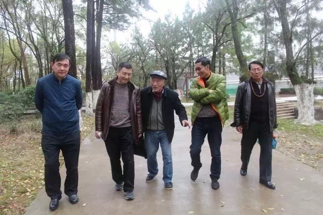 从左向右:海派百强名家王宣明、徐纯中、方世聪、著名影视演员牛犇、海派百强名家万福堂、著名记者作家成莫愁