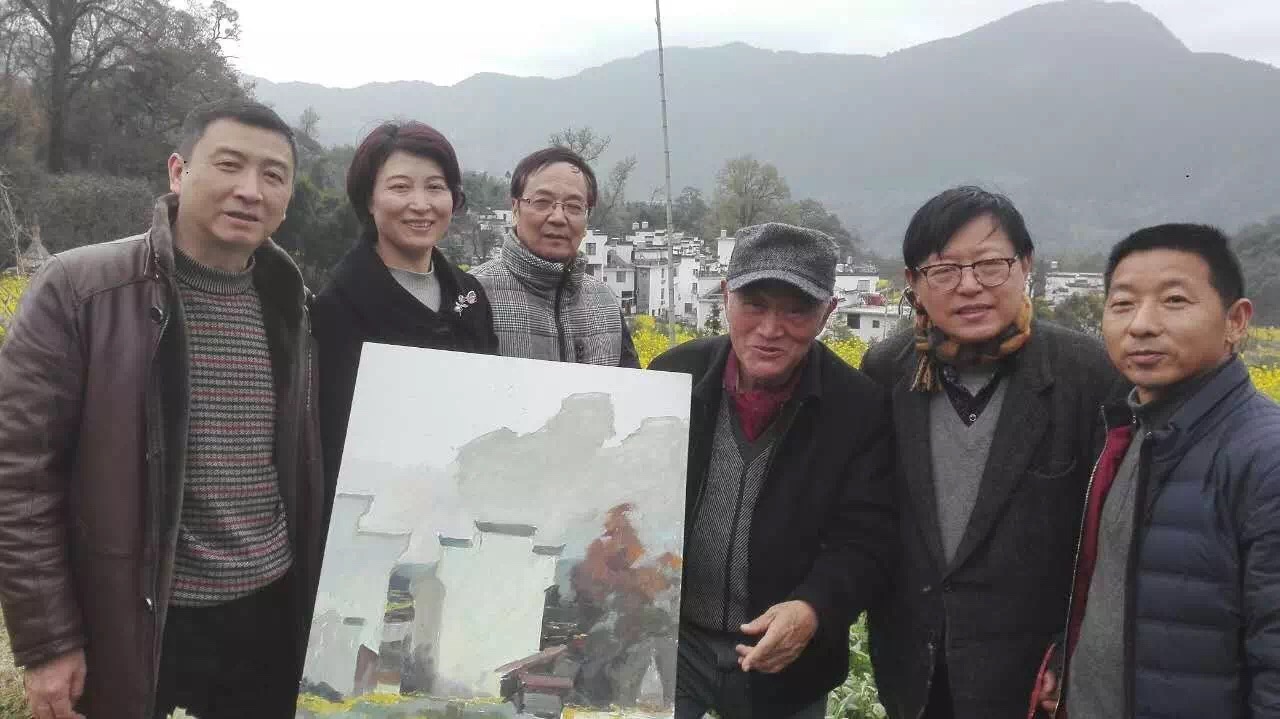 婺源画家王腾、上海著名策展人施平、婺源宣传部洪容辉、婺源画家石丽萍合影