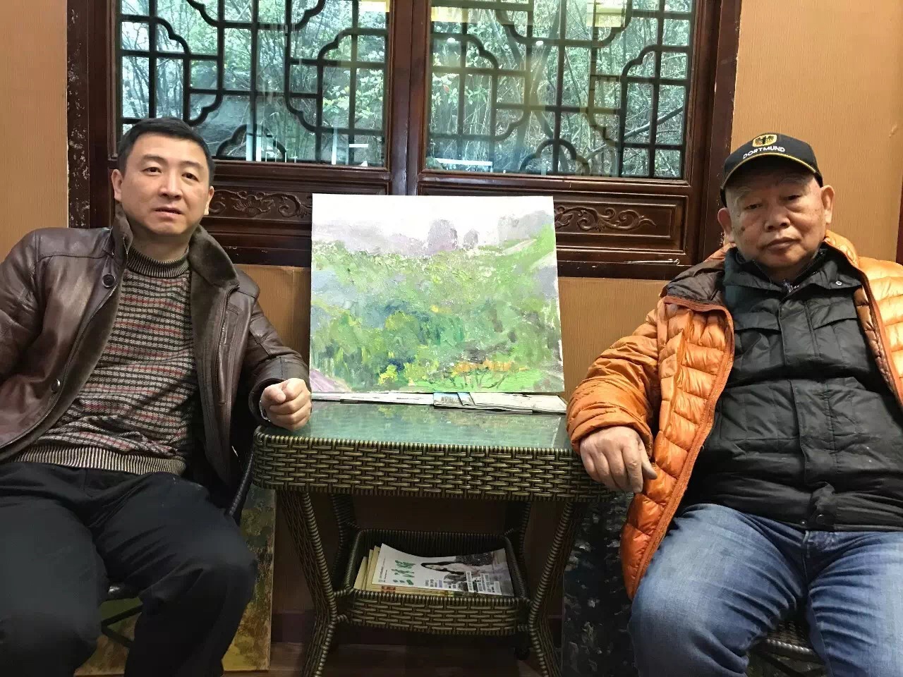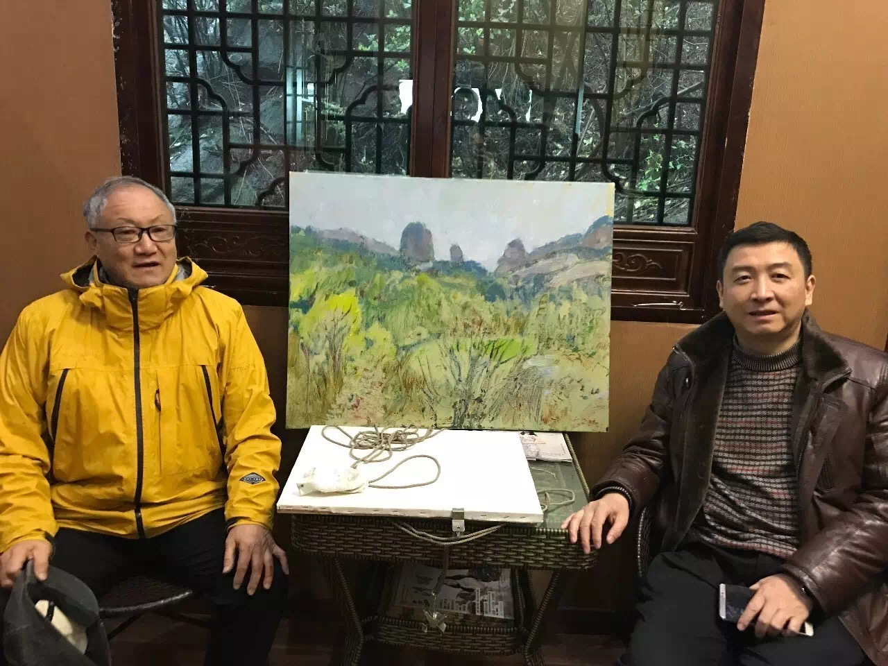 上饶当地画家马松林、上海著名策展人施平合影