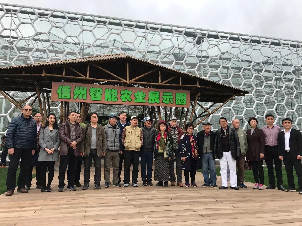 众人在信州智能农业展示园合影留念