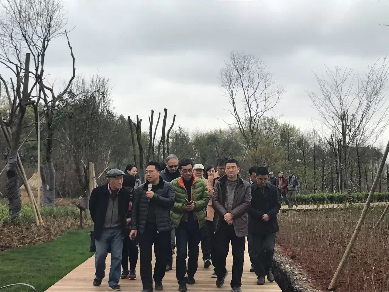 众人实地参观、考察农业示范园