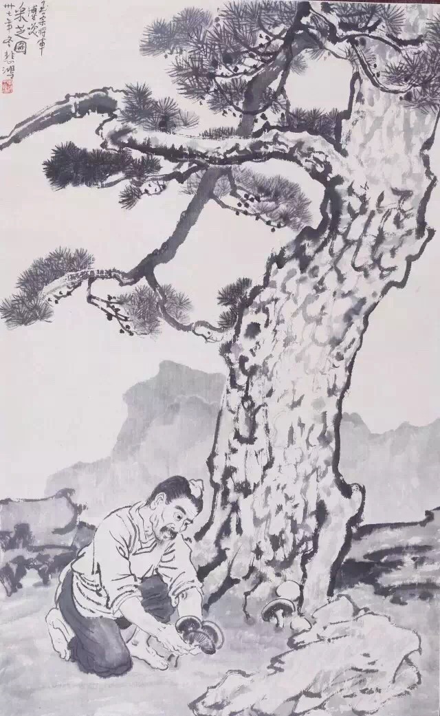 徐悲鸿 《采芝图》 纸本立轴 110×68cm