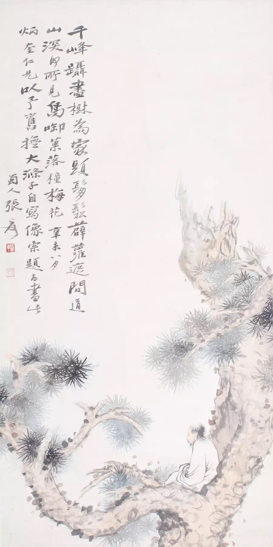 张大千《高士听松》纸本立轴 127 x 64 cm
