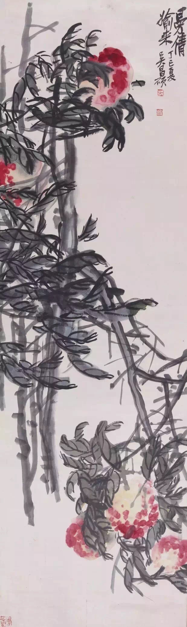 吴昌硕 《曼倩媮来》 綾本立轴 137.5×41.5cm