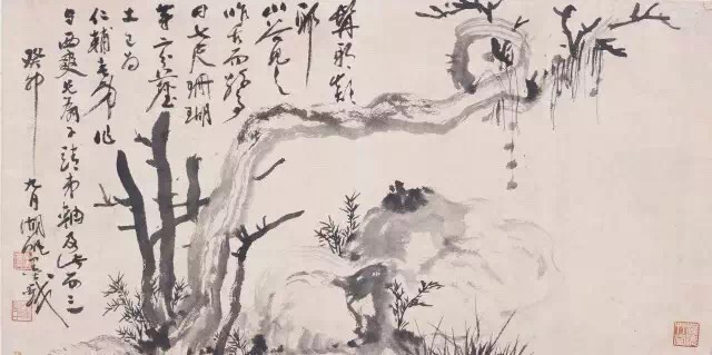 吴湖帆 《枯木竹石图》 纸本镜片 34×68cm