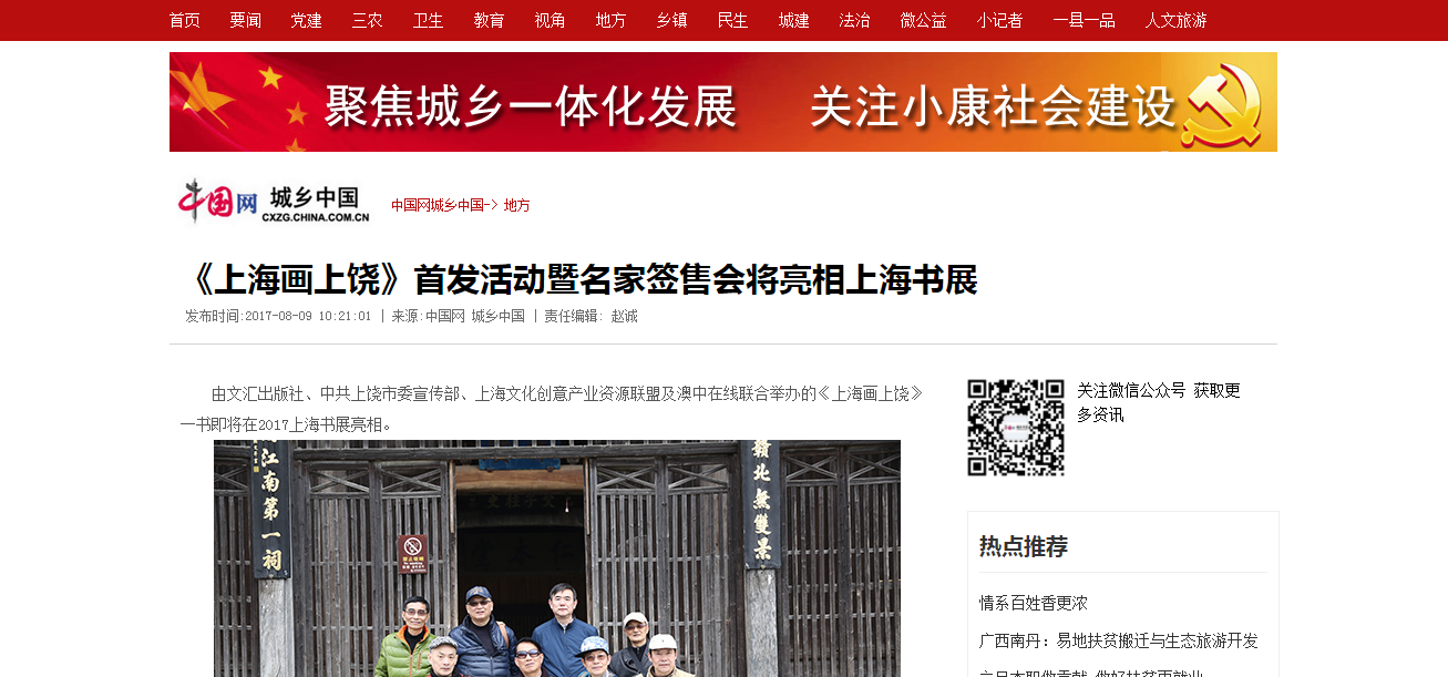 中国网报道《上海画上饶》首发活动暨名家签售会将亮相上海书展