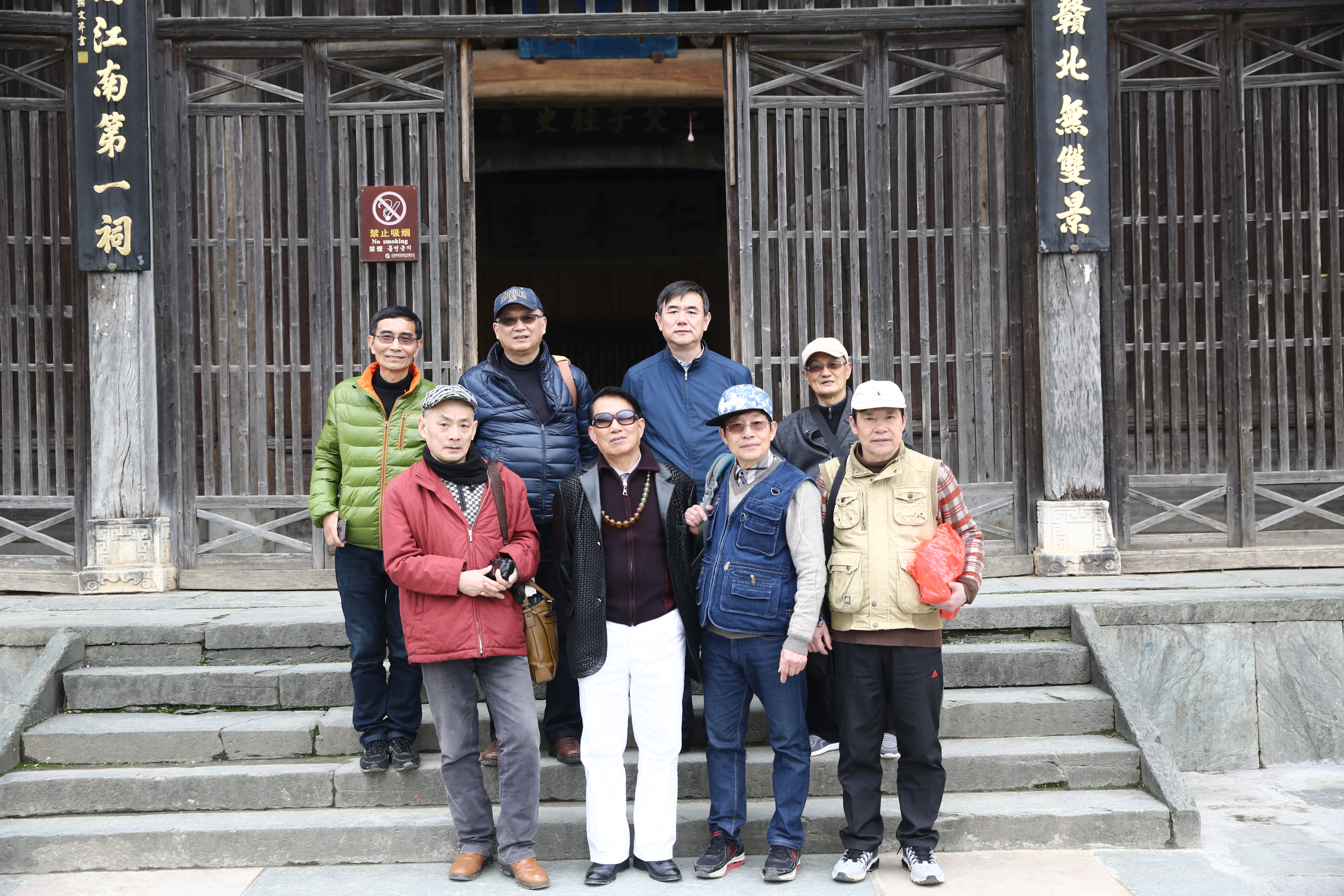 第一排(从左至右):海派百强名家刘汇茗、著名收藏家杨百兴、海派百强名家何承爵、何承锡 第二排:著名作家武佩珧、海派百强名家徐伟德、《人民日报》记者赵毅、海派百强名家王宣明