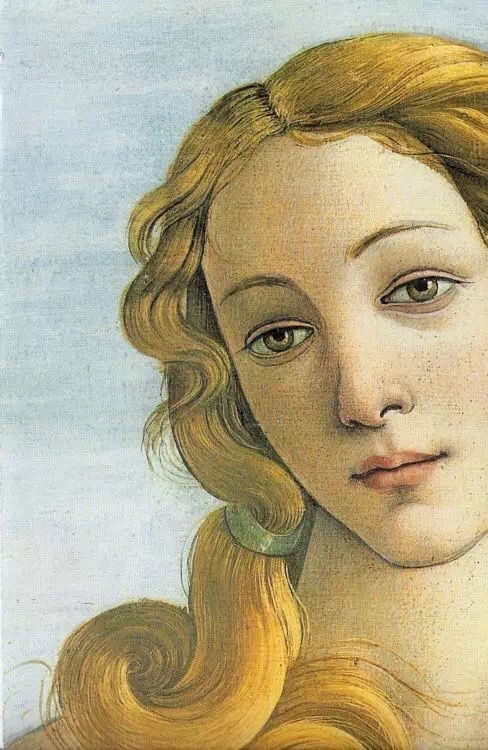 波提切利笔下的维纳斯有其特殊的风韵,这个被认为是美术史上最优雅的裸体,并不象后来某些威尼斯画家所倾心的那种华丽丰艳、生命力过剩的妇女,而是面容上带有一种无邪的稚气。