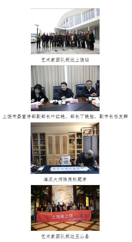 今年3、4月由中共上饶市委宣传部、上海文化创意产业资源联盟及澳中在线共同组织的“一城一市艺术先行——‘红’山绿水艺术行”活动在上饶各地展开。活动由著名策展人施平全程策划,聚集沪上20余位书画名家、企业家、影视演员、收藏家、记者参与其中,通过实地考察采风加深对大美上饶的认知,活动在两地都极为瞩目,取得圆满成功。今年8月份上海书展,施平主编的《上海画上饶》一书出版,标志着上海、上饶“双城时代”的到来。上饶市副市长任友群亲自为《上海画上饶》一书题跋,“‘艺术是凝固的风景’通过艺术的描绘,对于妆点现代城市和点缀秀美乡村将起到举足轻重的作用;通过艺术的挖掘,会让更多的人发现美和认识美。同时“艺术是无声的语言”,通过艺术的展示,对于提升城市形象和加大城市推广将起到出奇制胜的效果”。《上海画上饶》是一本全面介绍上饶的高铁、经济发展、文化、教育、旅游、投资等融为一体的经典的书籍,伴随两地的艺术及企业交流,为读者认识上饶,知晓上饶,走进上饶,熟悉上饶提供了便捷通道。