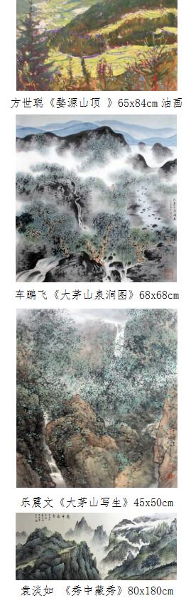 方世聪两幅作品《婺源山顶》与《龟峰》均为现场采风创作,所见即所得,所感加联想,加上光线、角度、动作、感觉、味道等等杂糅在一起,捕捉到婺源、龟峰神韵及形象。
